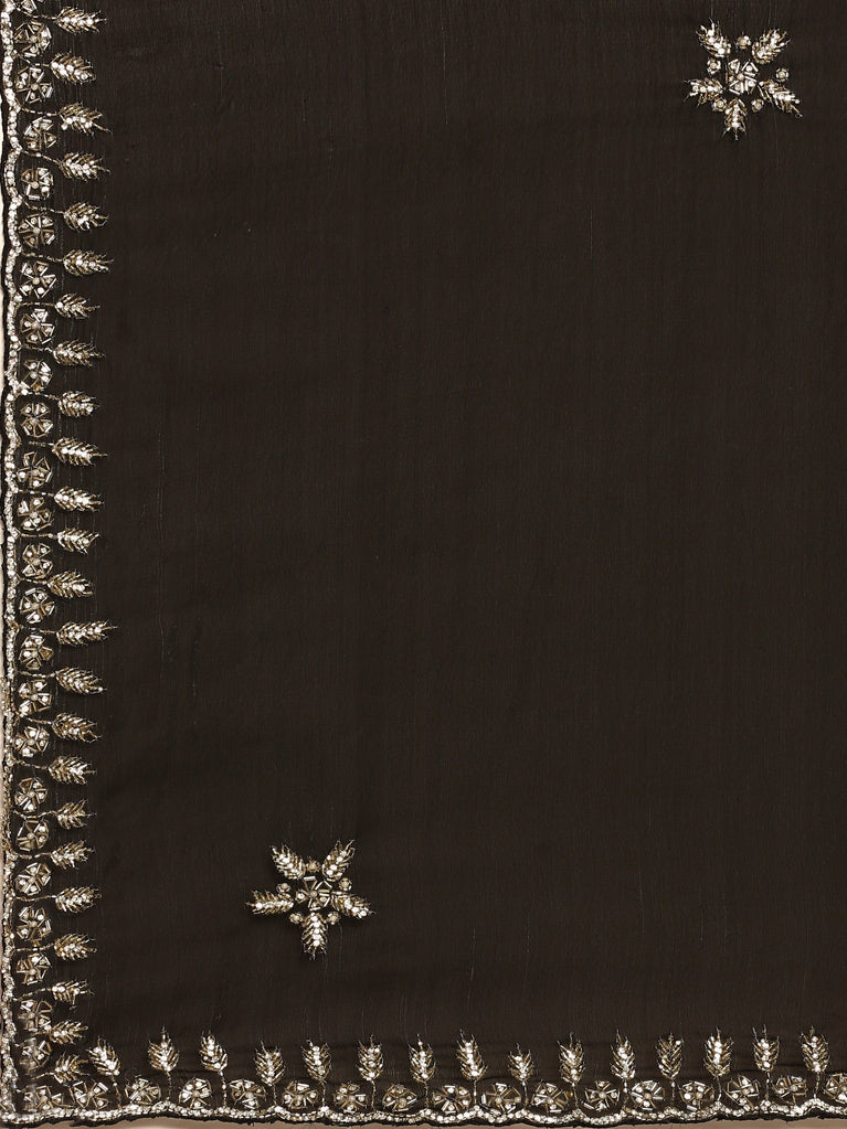 Black shimmer tissue saree with cut Dana & Swarovski embroidery