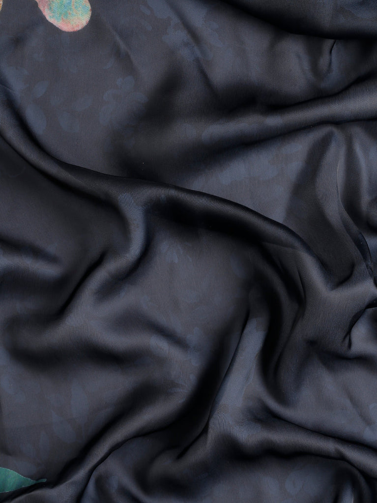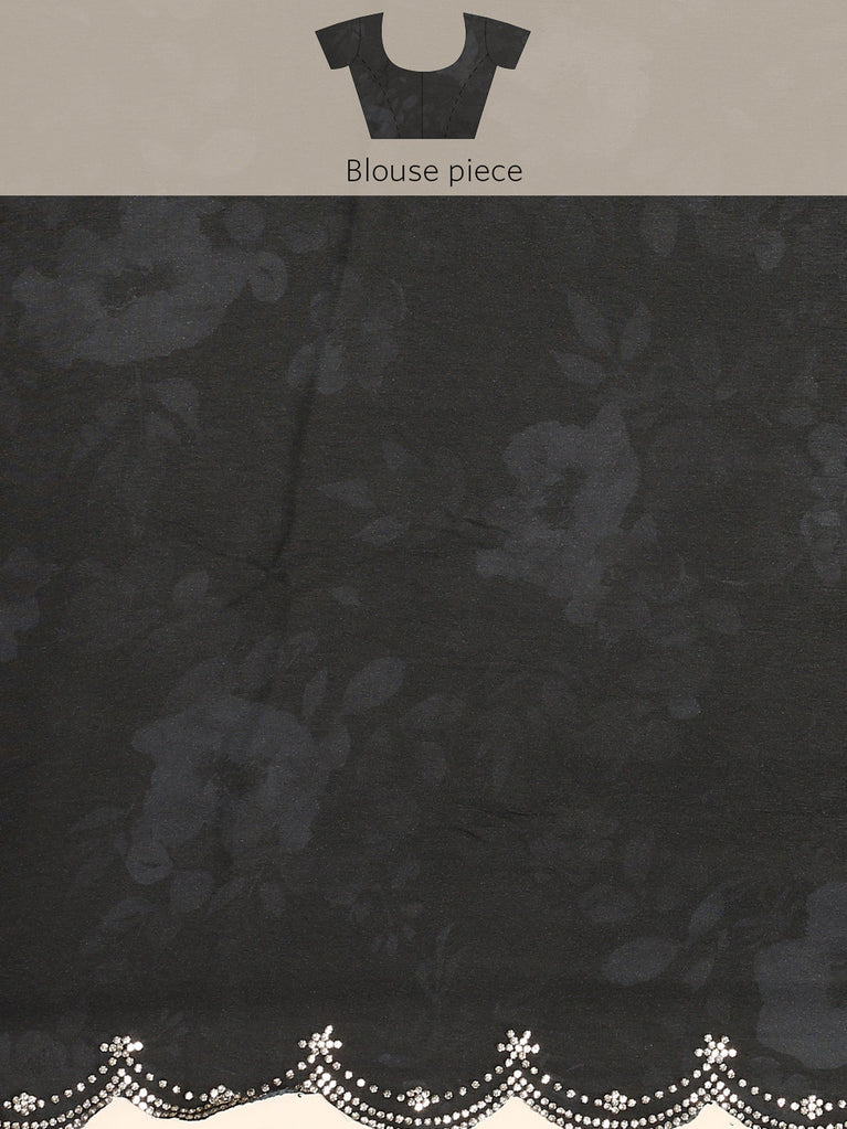 Black stain floral printed saree with Swarovski embroidery