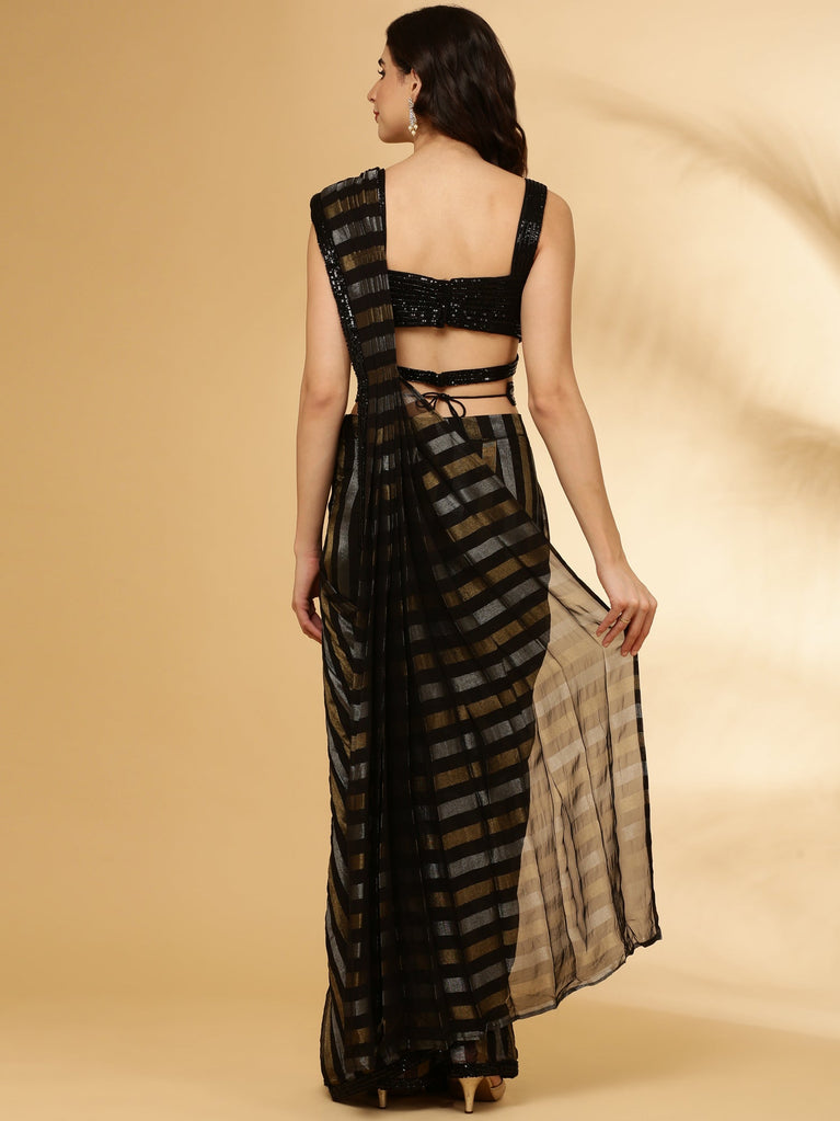 The saree is accompanied by a stylish, ready-made blouse designed to complete your look.