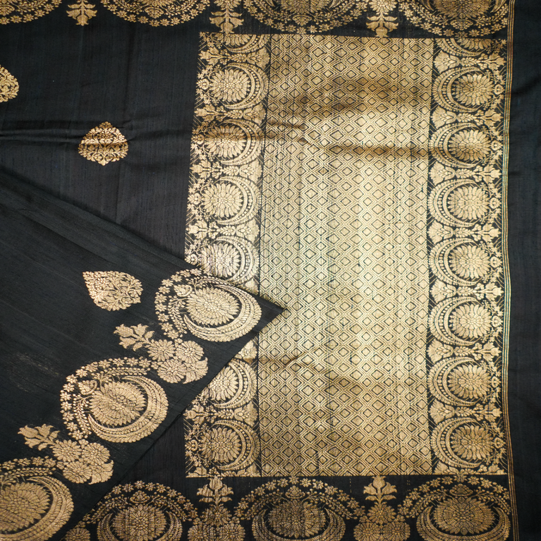 Black Tussar Handloom Jewellery Border All Over Buttas Saree