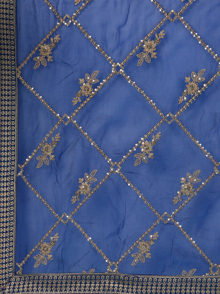 Embrace timeless elegance with this stunning blue silk ghagra set, meticulously crafted with intricate hand embroidery. The rich blue hue complements traditional artistry, while the flowing silhouette offers graceful movement and comfort. Perfect for weddings, festivals, and special celebrations, this ensemble showcases the finest in ethnic craftsmanship. Each stitch tells a story of dedication and skill, making it a cherished addition to your wardrobe.