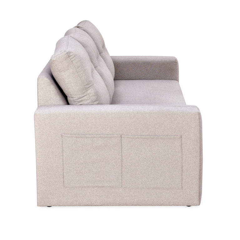 Boxton Fabric 3 Seater Sofa Cum Bed With Side Pockets (Light Brown)