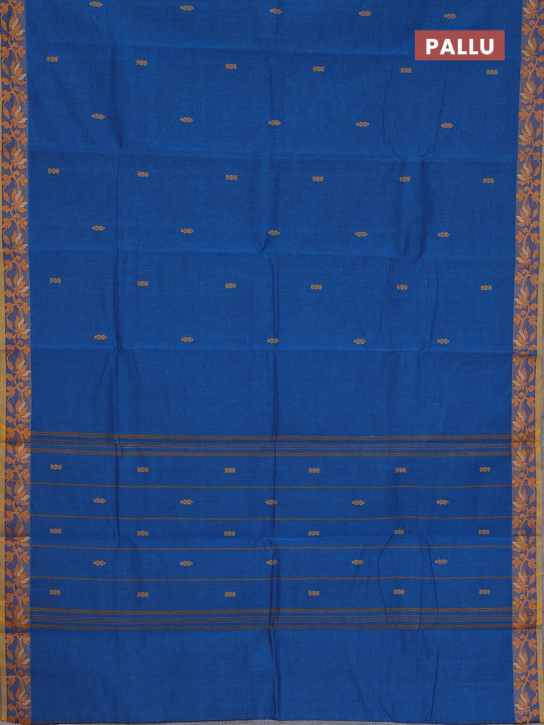 Chettinad cotton saree cs blue and yellow with thread woven buttas and floral design border