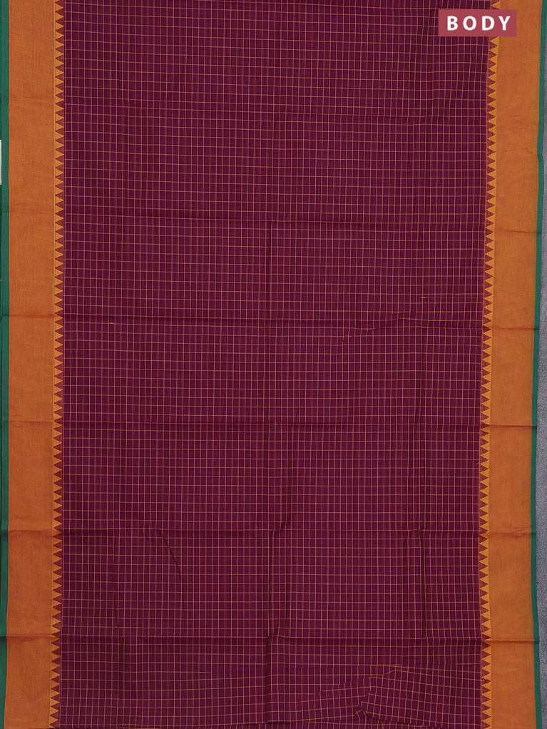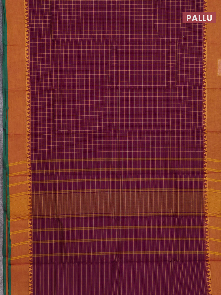 Chettinad cotton saree deep purple and mustard yellow with allover checked pattern and simple border