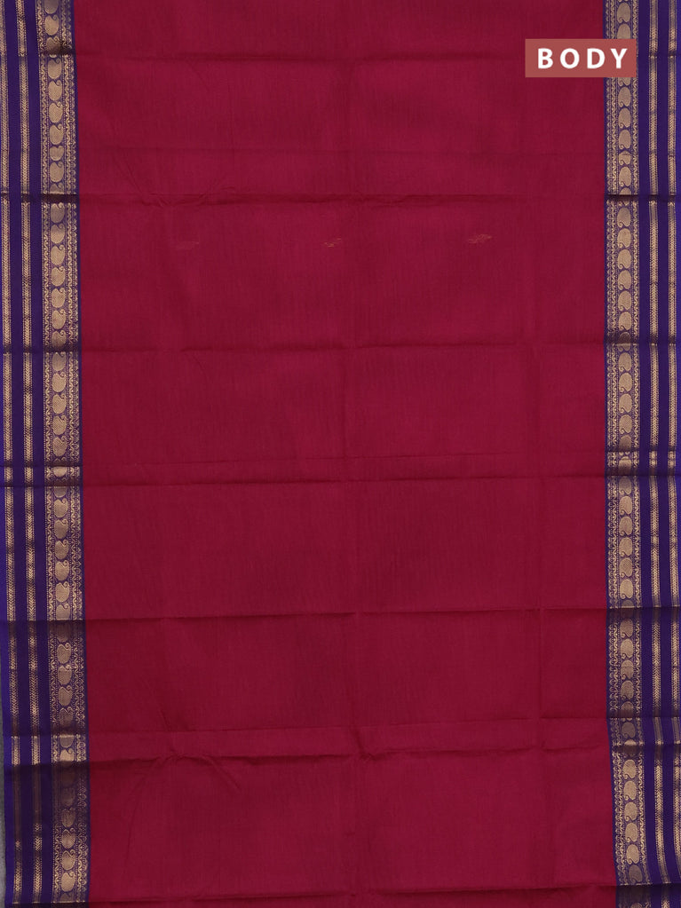 Chettinad cotton saree dark pink and voilet with thread woven buttas and temple disign zari woven border