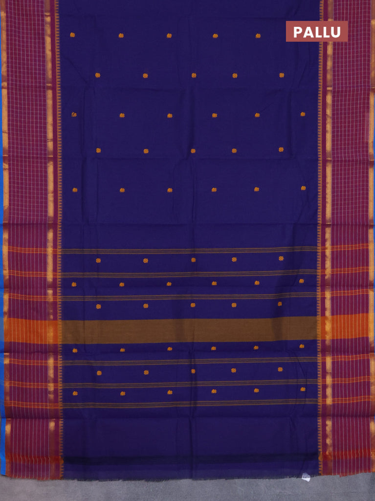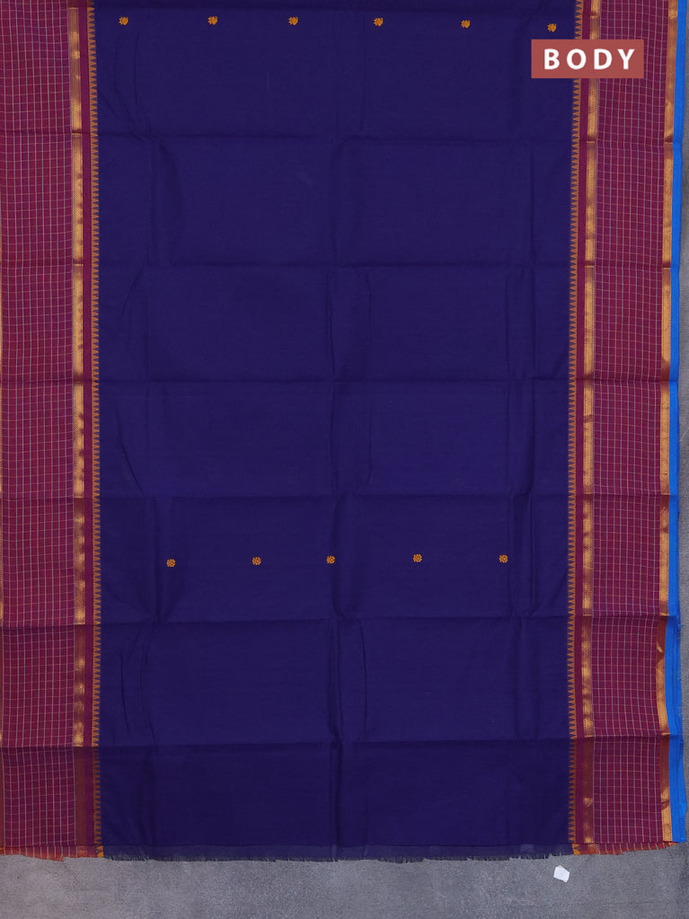 Chettinad cotton saree dark peacock blue and maroon with thread woven buttas and thread & zari woven border
