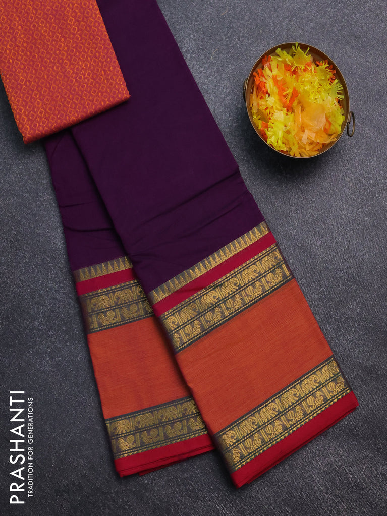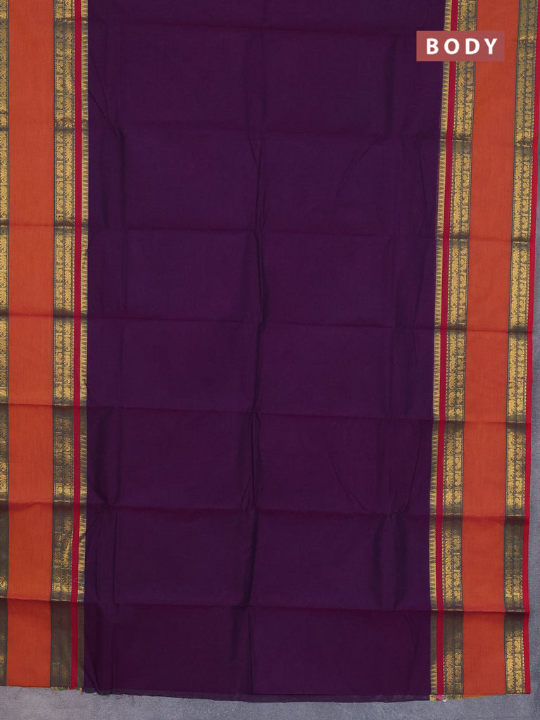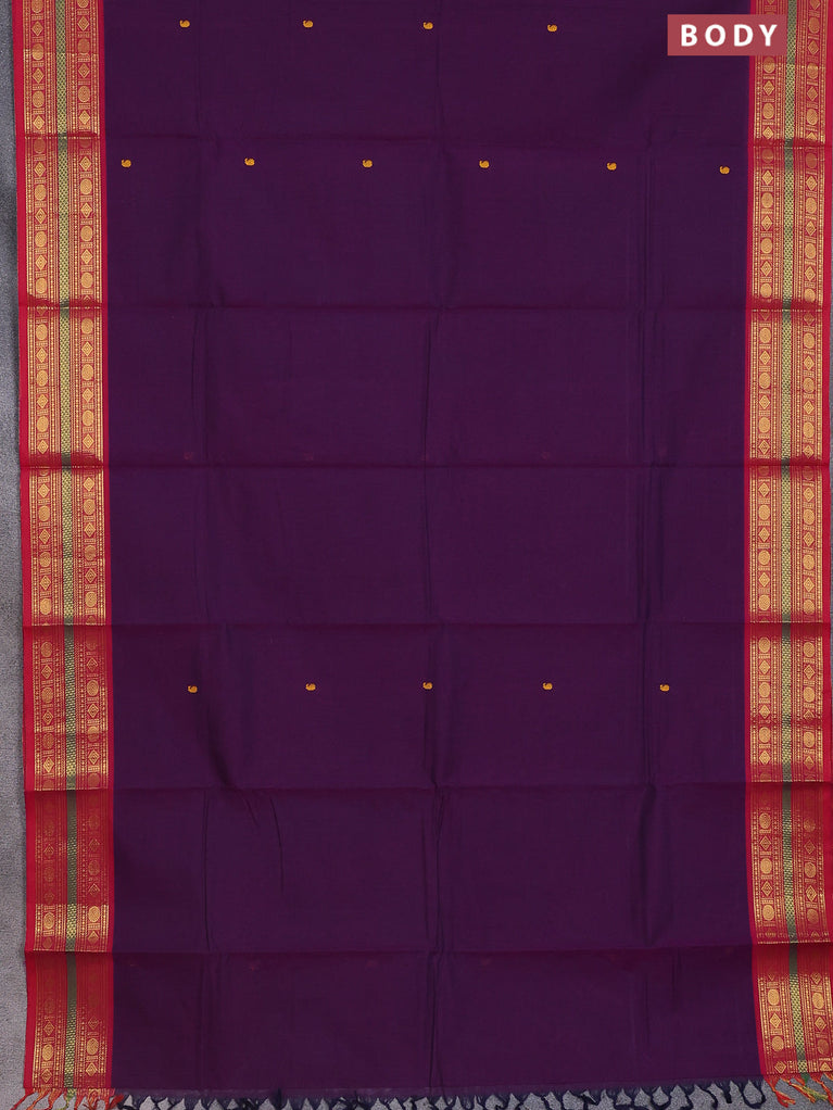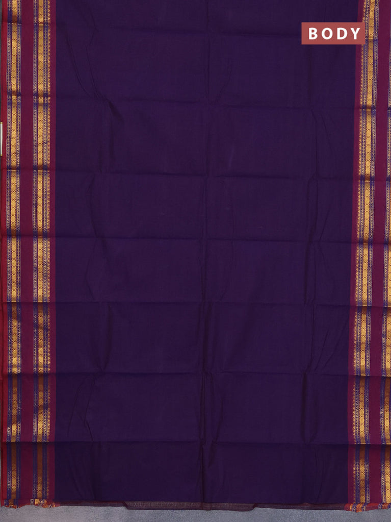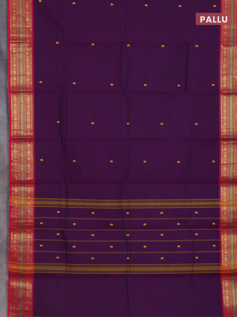 Chettinad cotton saree deep voilet and purple with thread woven buttas and rattapet zari woven border