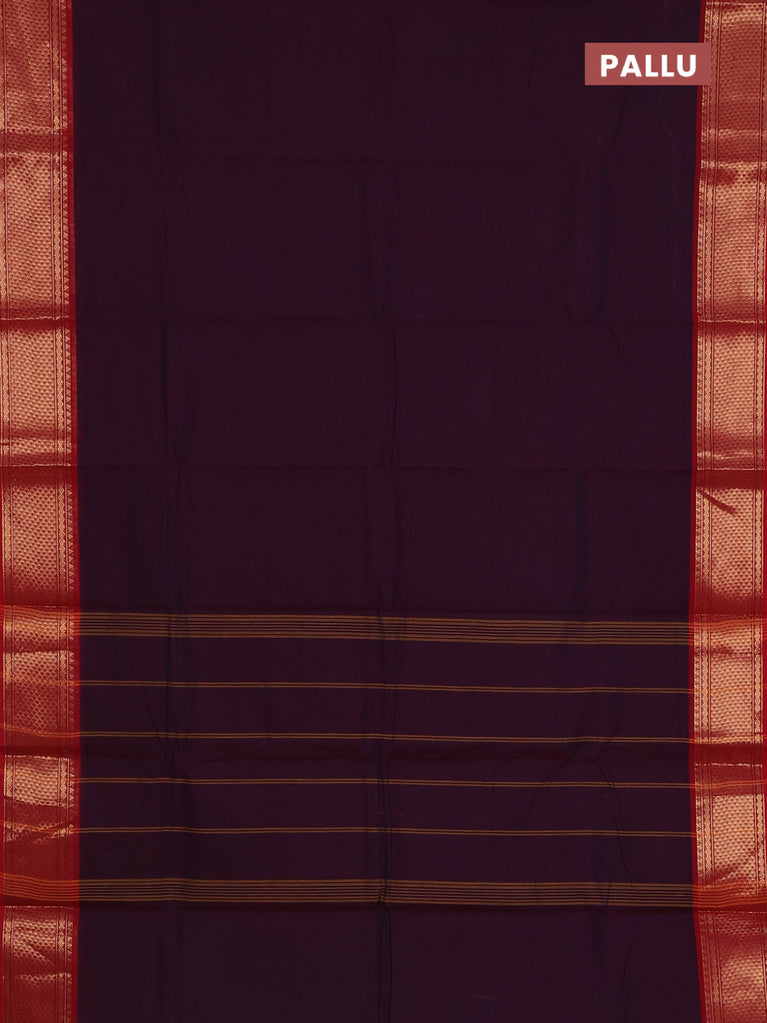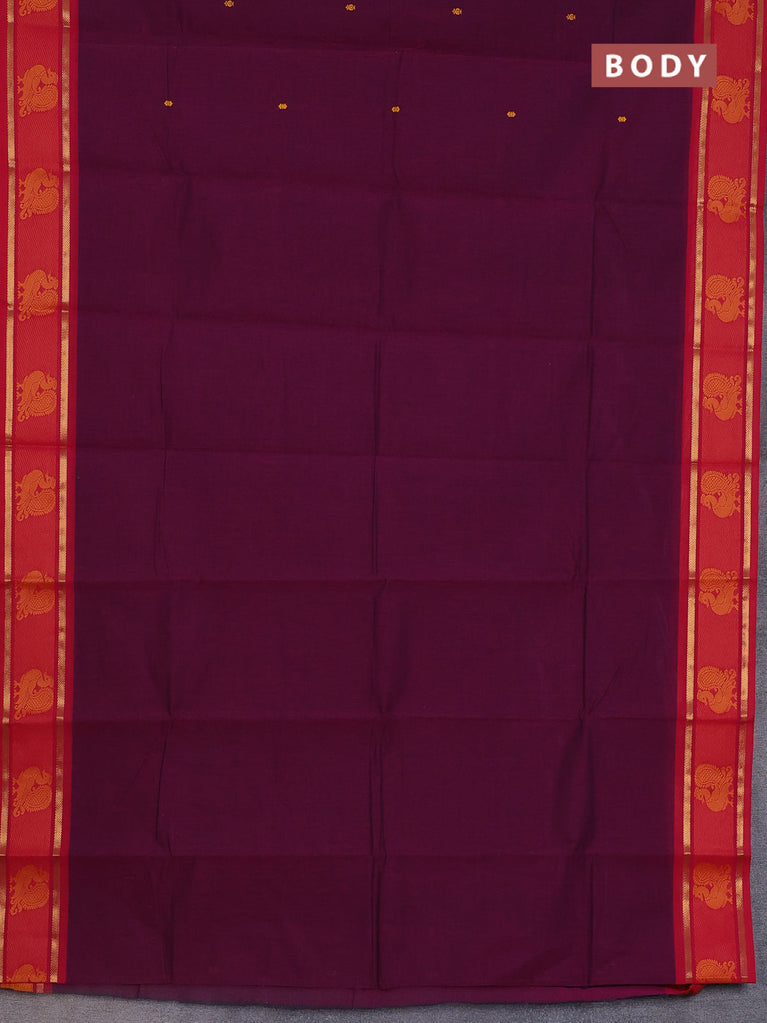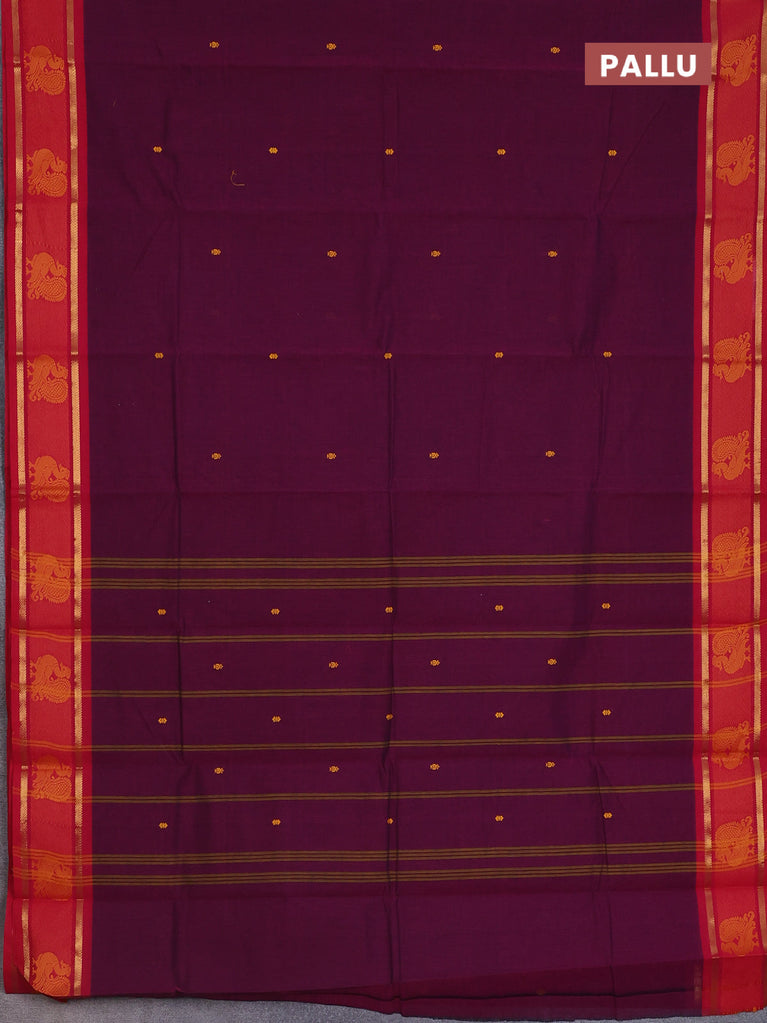 Chettinad cotton saree deep jamun shade and red with thread woven buttas and zari woven border
