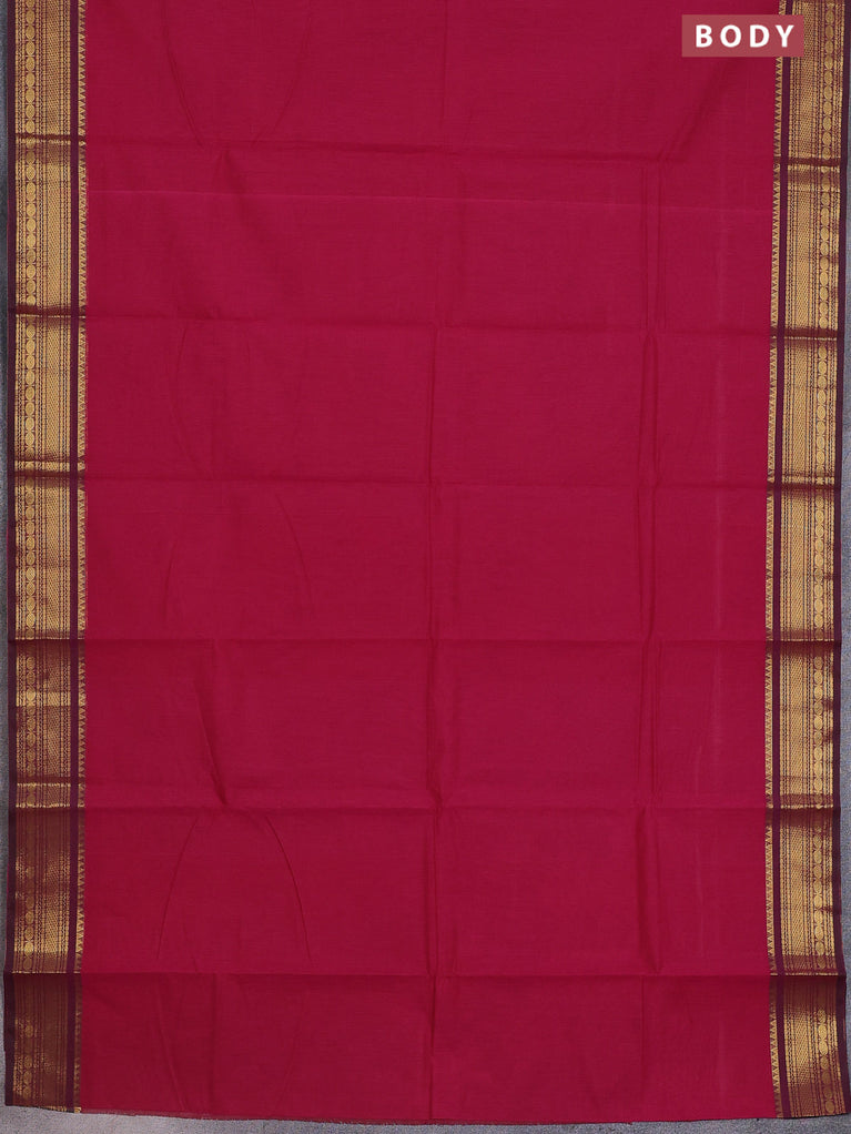 Chettinad cotton saree dark pink and magenta pink with thread woven buttas and zari woven border
