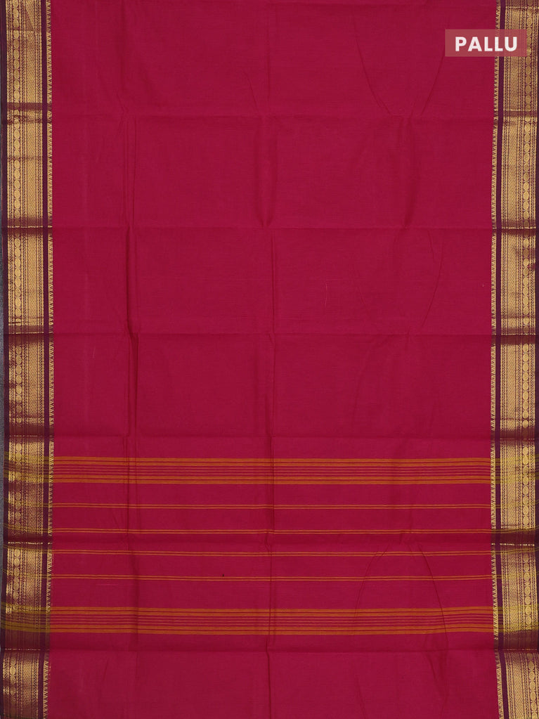 Chettinad cotton saree dark magenta pink and green with thread woven buttas and rettapet zari woven border