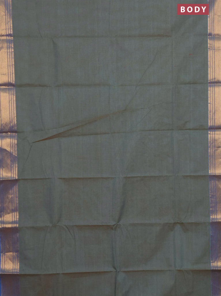 Chettinad cotton saree dual shade of bluish green and dark mustard with thread woven buttas and thread woven border