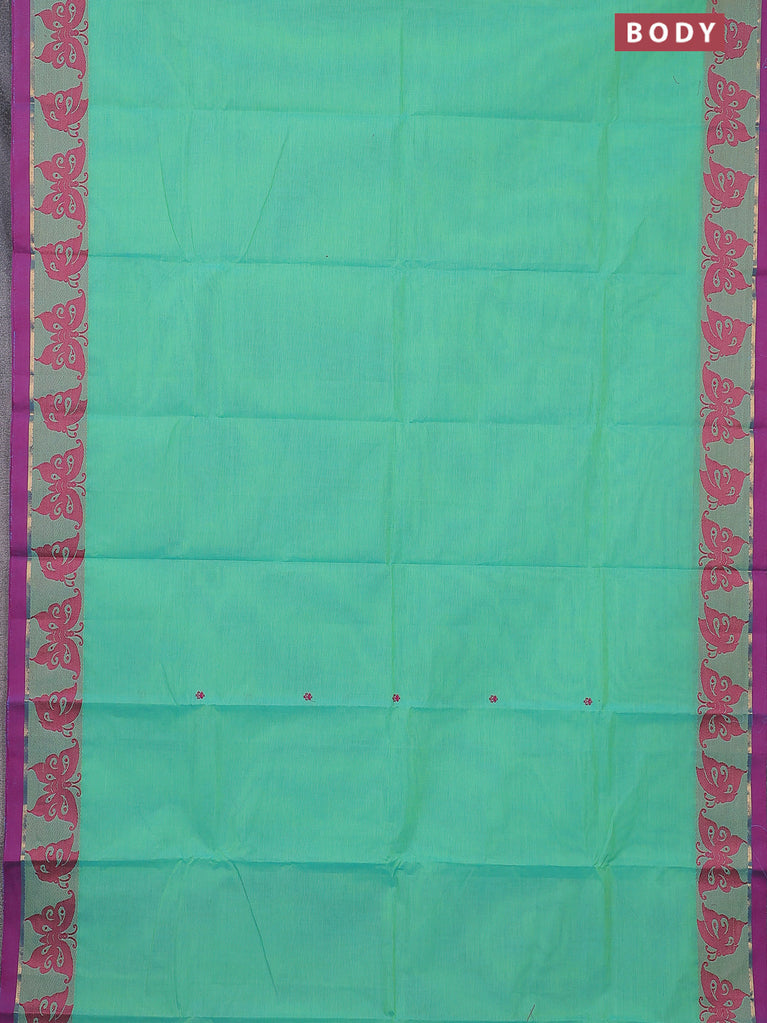 Chettinad cotton saree teal green and dark pink with thread woven buttas and thread woven border