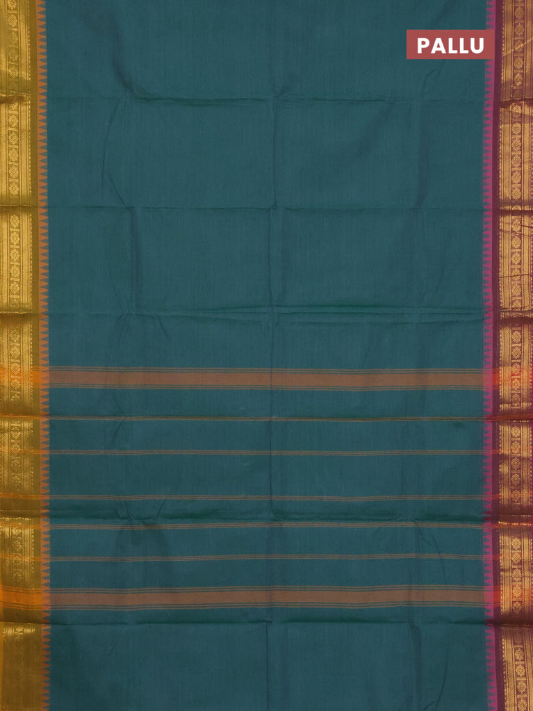 Chettinad cotton saree teal green and blue with thread woven buttas and temple disign zari woven border