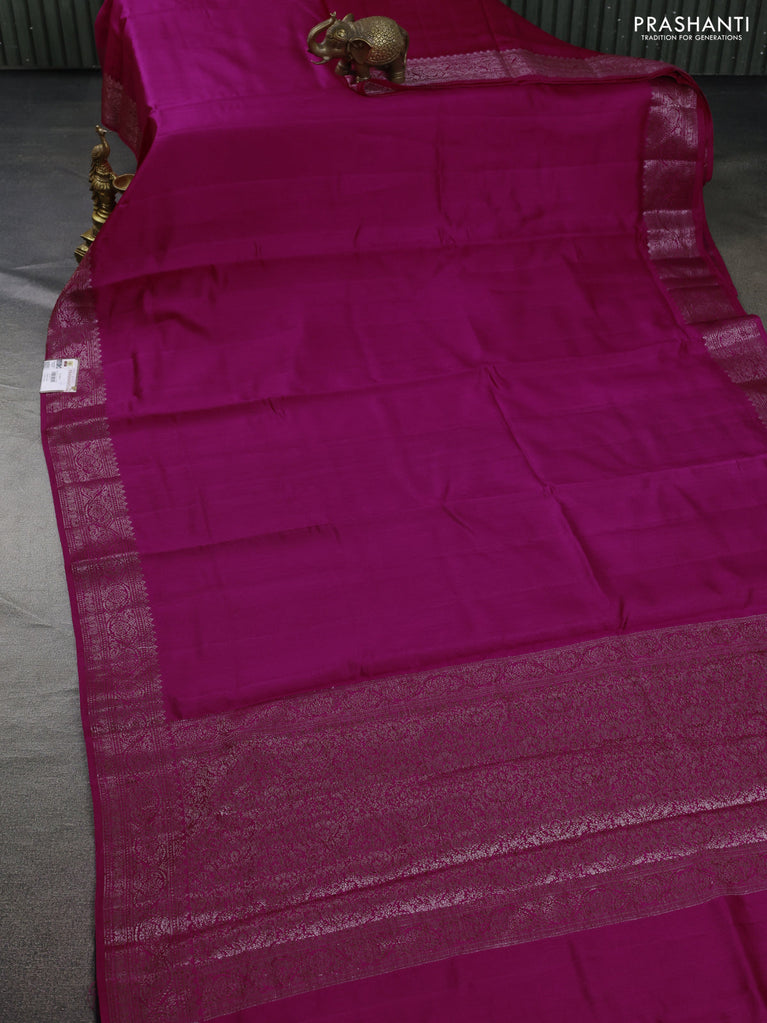 Chiniya silk saree magenta pink with plain body and woven border