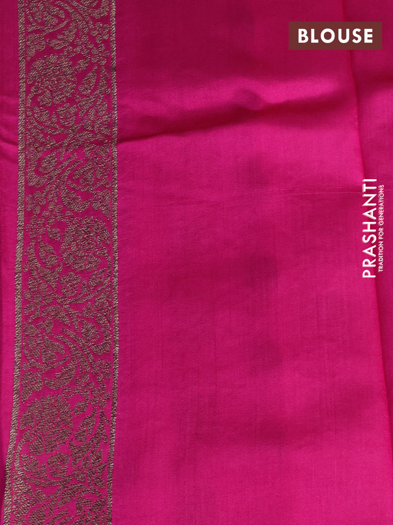 Chiniya silk saree magenta pink and military green with allover zari buttas & bandhini prints and zari woven border