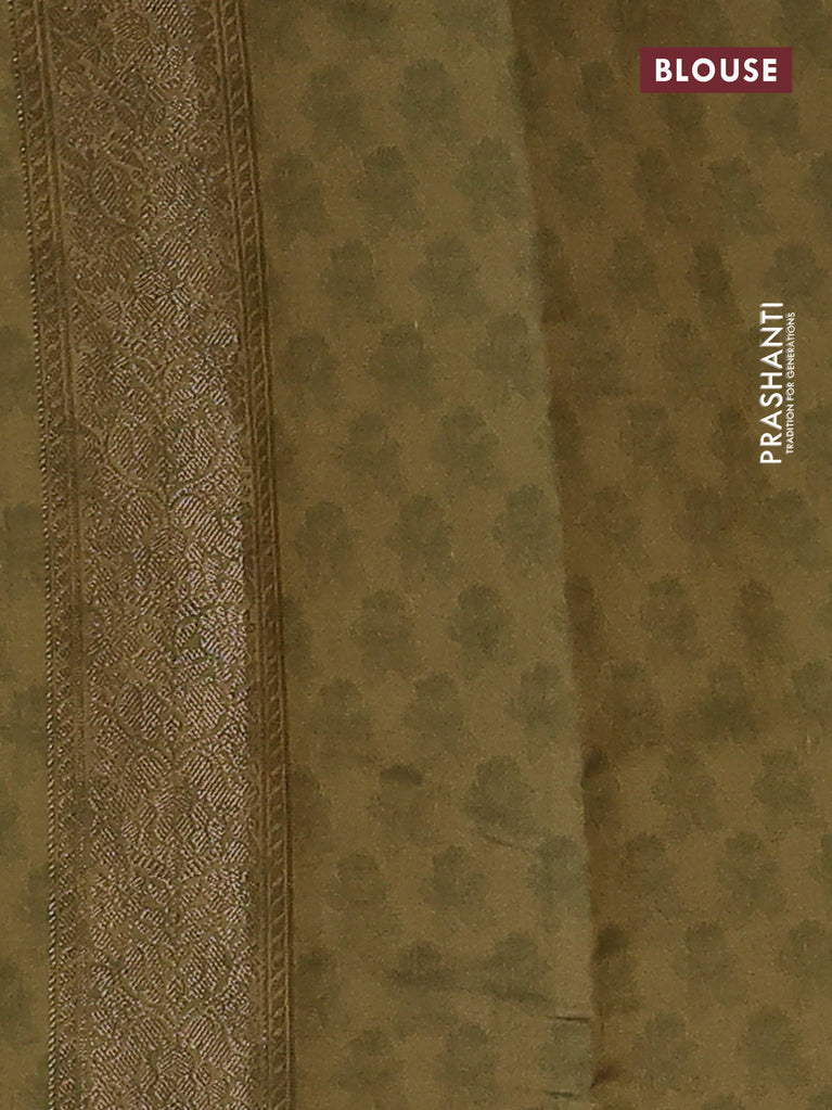 Chiniya silk saree peach pink and mehendi green with allover zari weaves & bandhini prints and zari woven border