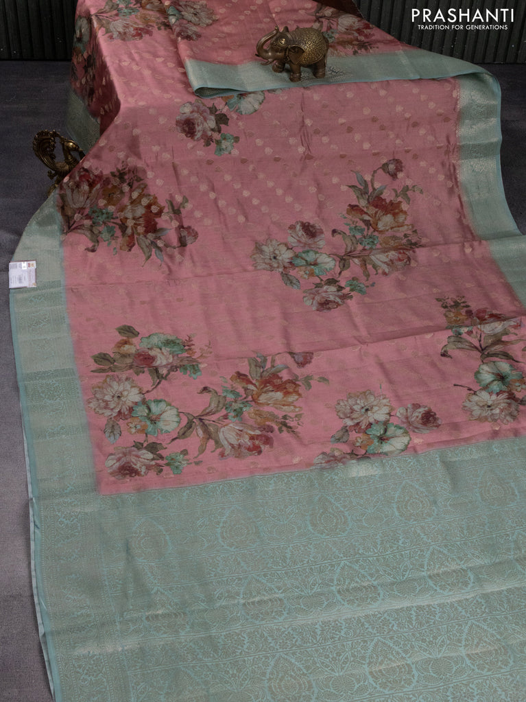 Chiniya silk saree onion pink and pastel blue shade with allover woven buttas & floral digital prints and zari woven border