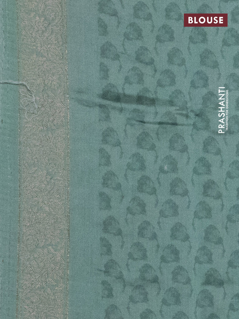 Chiniya silk saree off white and pastel green with allover silver zari buttas & digital prints and zari woven border