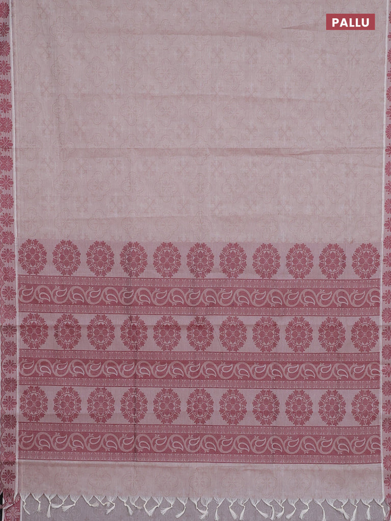 Coimbatore cotton saree dark magenta pink and sandal with allover self emboss and thread woven border