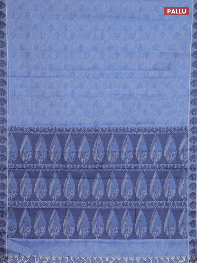 Coimbatore cotton saree blue with allover self emboss and thread woven border