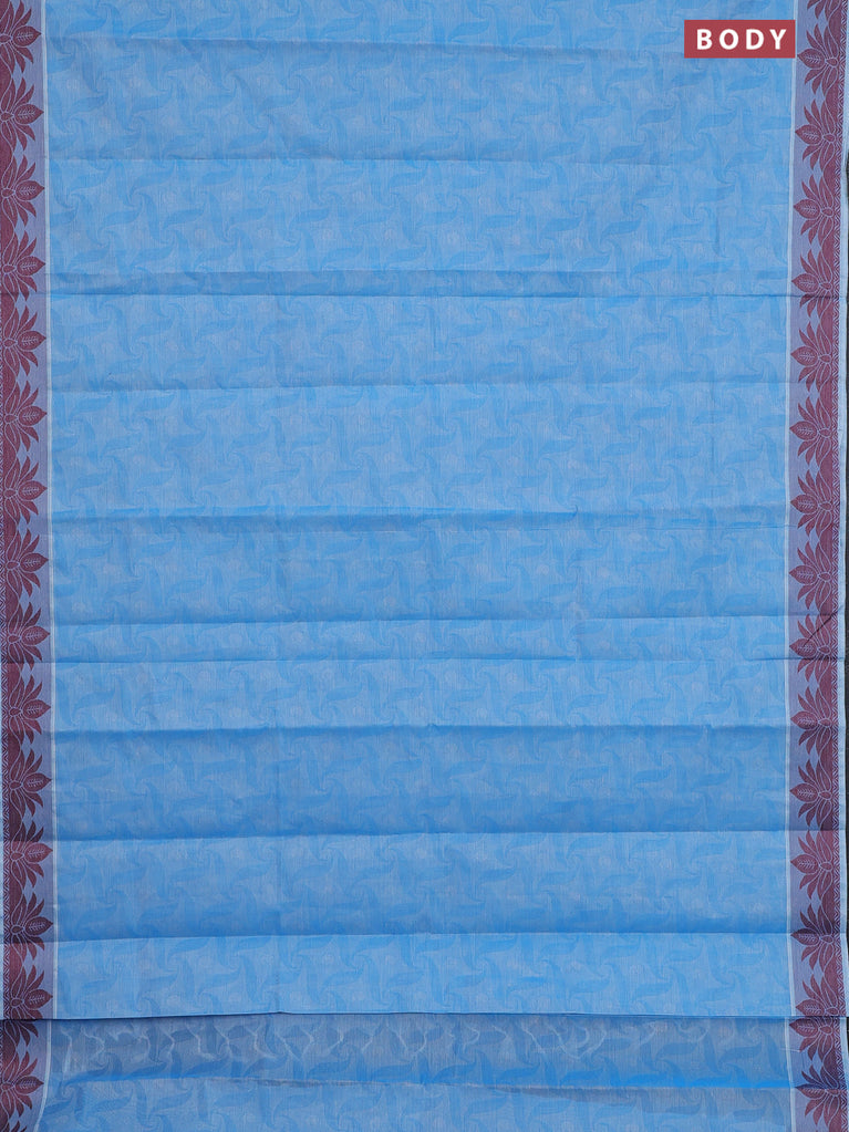 Coimbatore cotton saree blue and maroon with allover self emboss and thread woven border