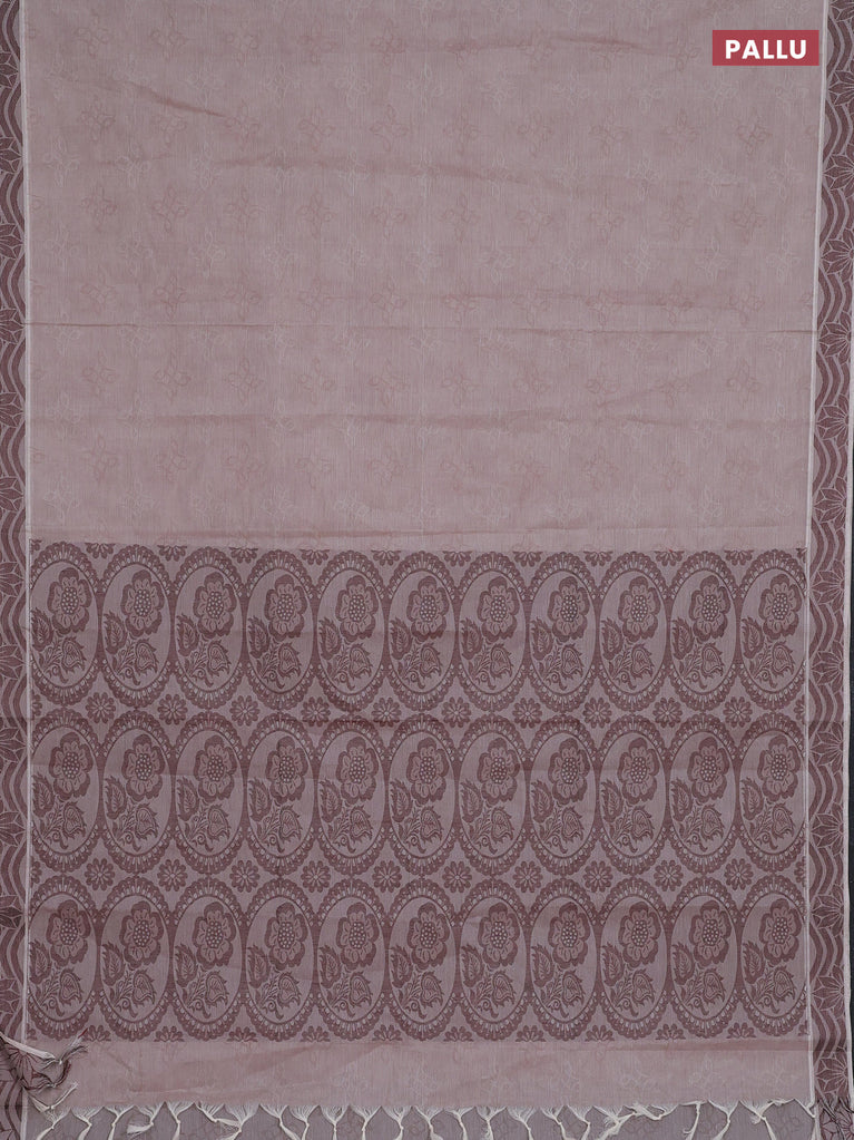 Coimbatore cotton saree deep jamun shade and sandal with allover self emboss and thread woven border