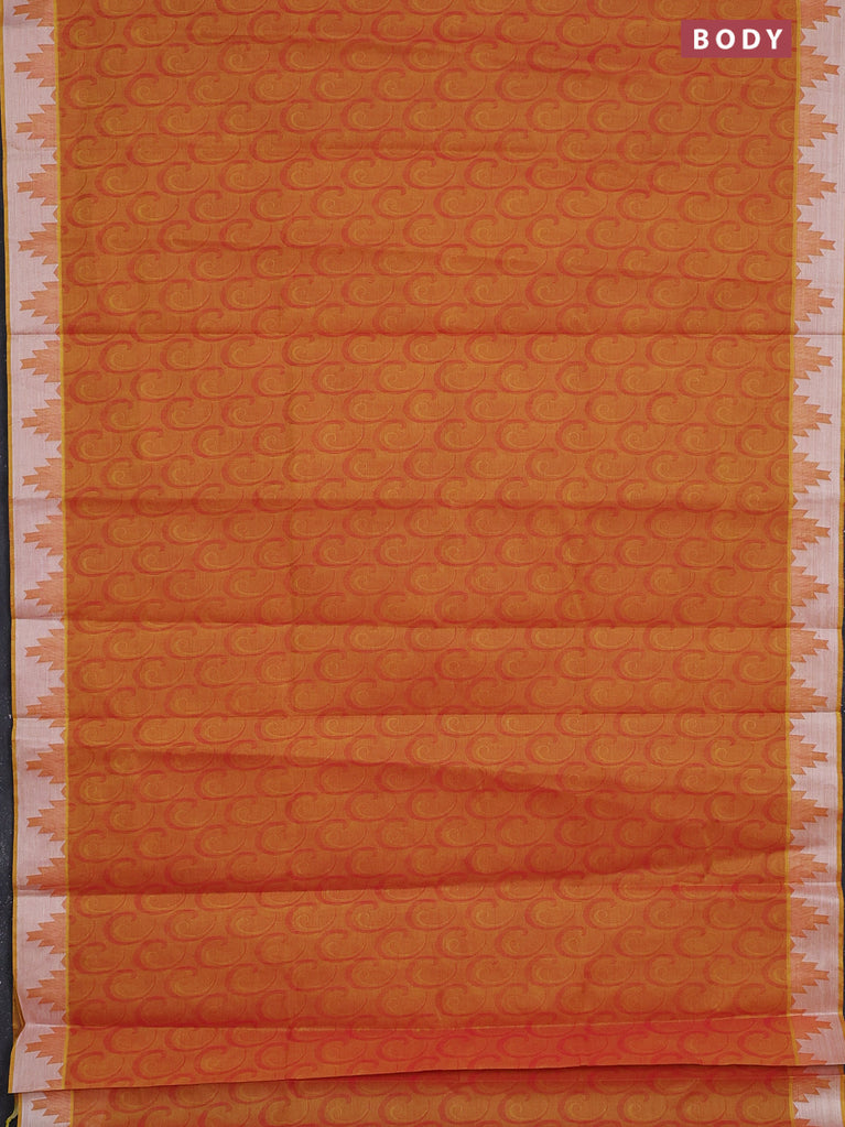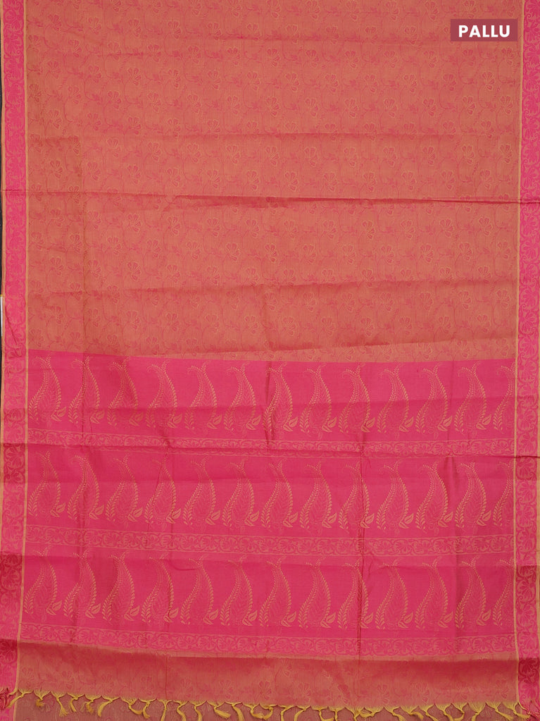 Coimbatore cotton saree dual shade of pinkish yellow with allover self emboss and thread woven border
