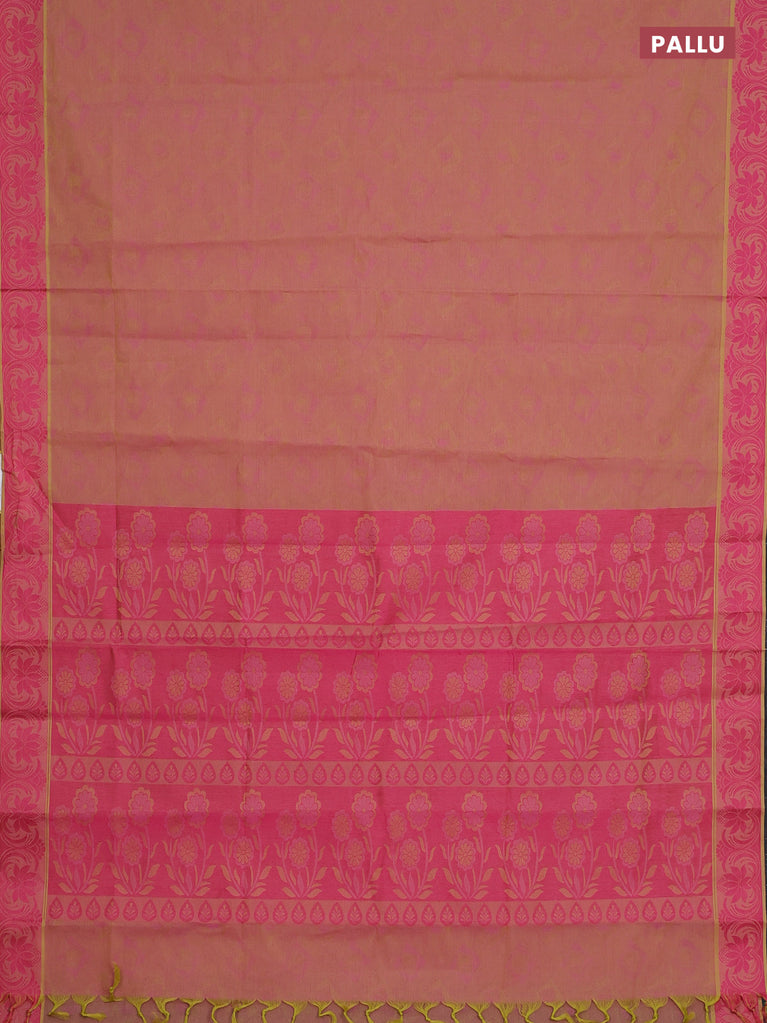 Coimbatore cotton saree dual shade of yellowish light pink with allover self emboss and thread woven border