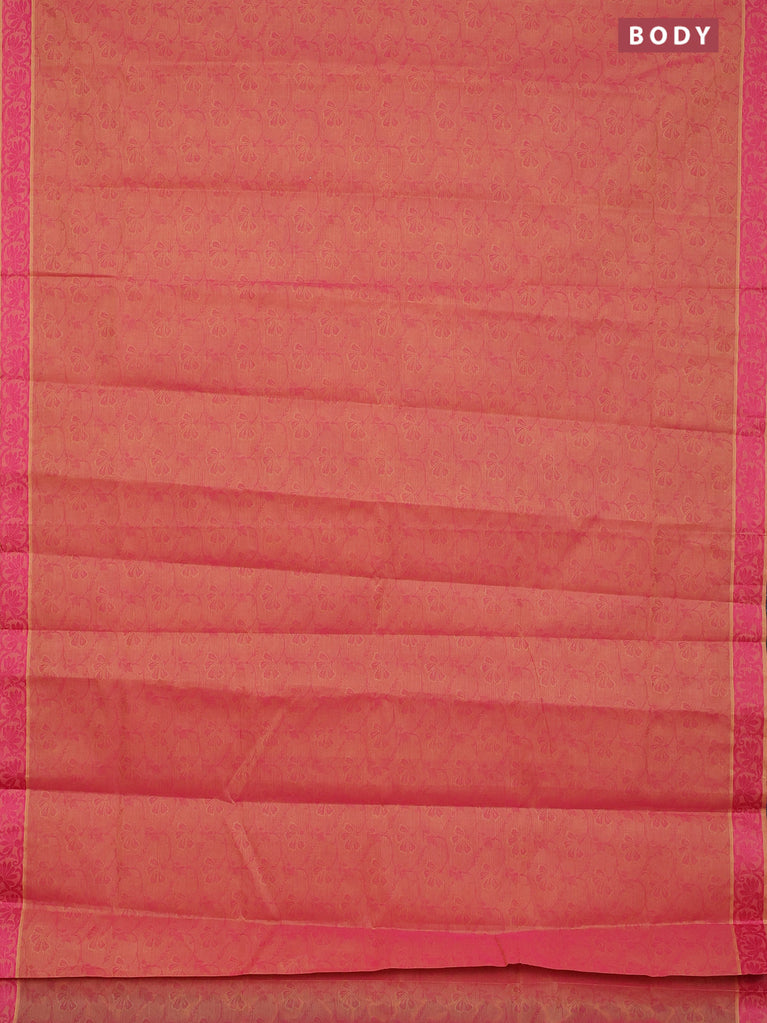 Coimbatore cotton saree dual shade of yellowish pink and pink with allover self emboss and thread woven border