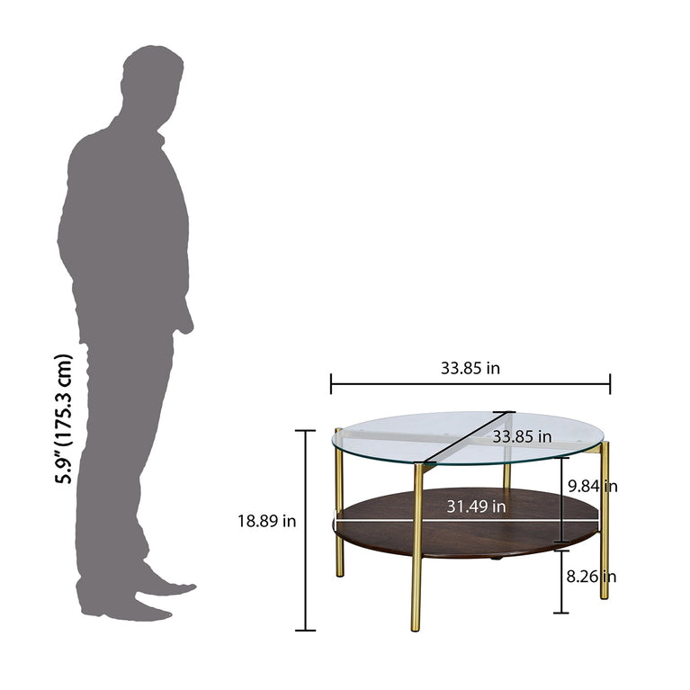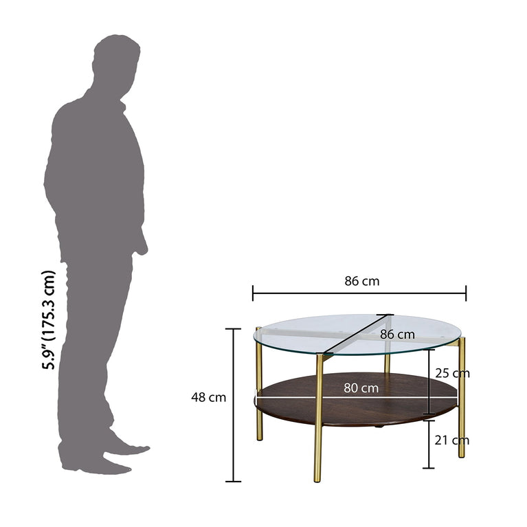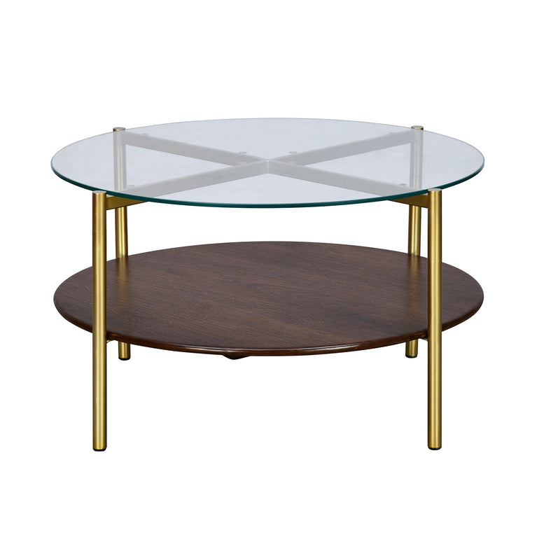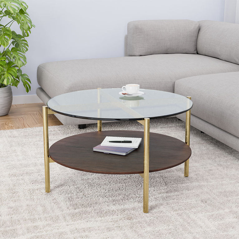 Adira Glass Top Metal Frame Center Table (Red Walnut)