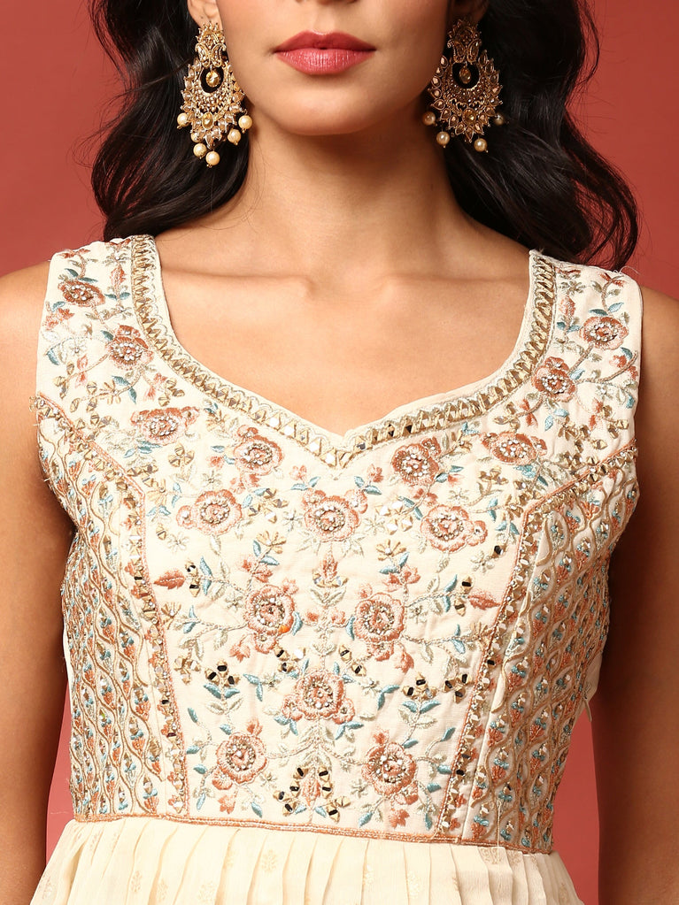 Cream Tissue Floral Embroidered Anarkali Set