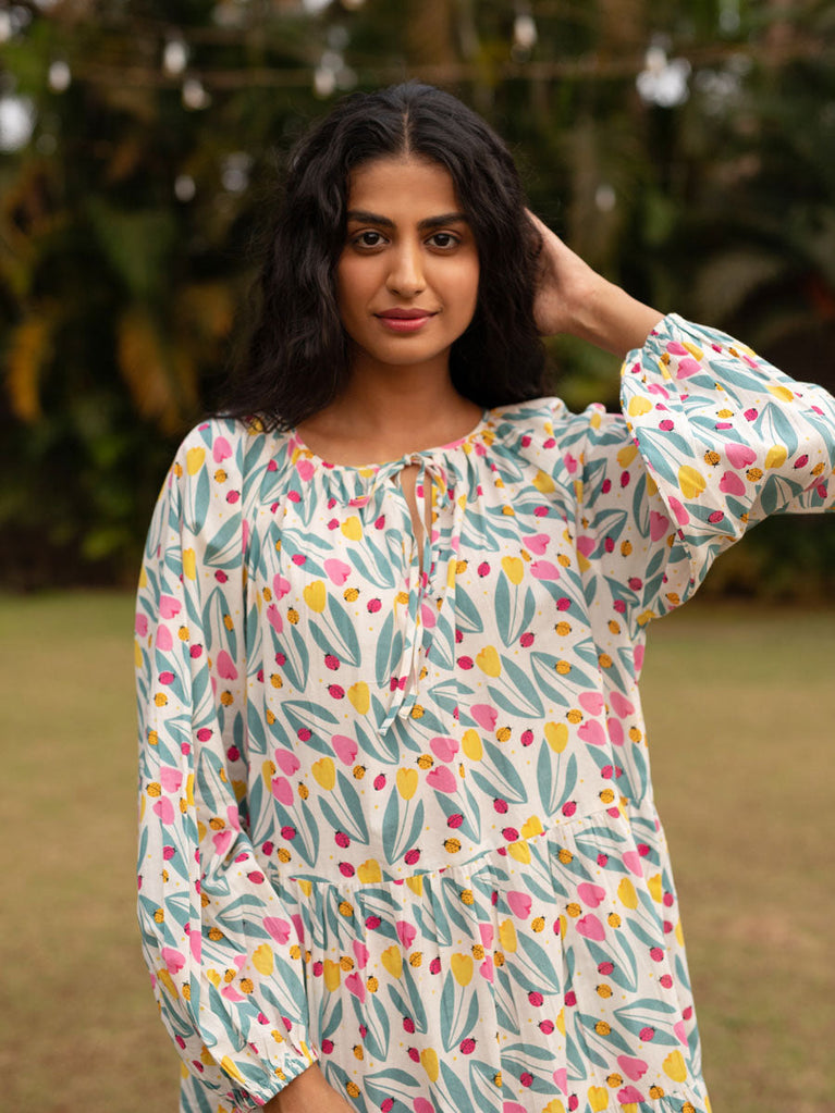 Fabric: Raw silk that drapes beautifully, characterized by its breathable and lightweight nature. The fabric exudes a delicate, refined sheen and is gentle on the skin. Its non-shrinkage and wrinkle-resistant qualities make it an ideal choice for effortless style.