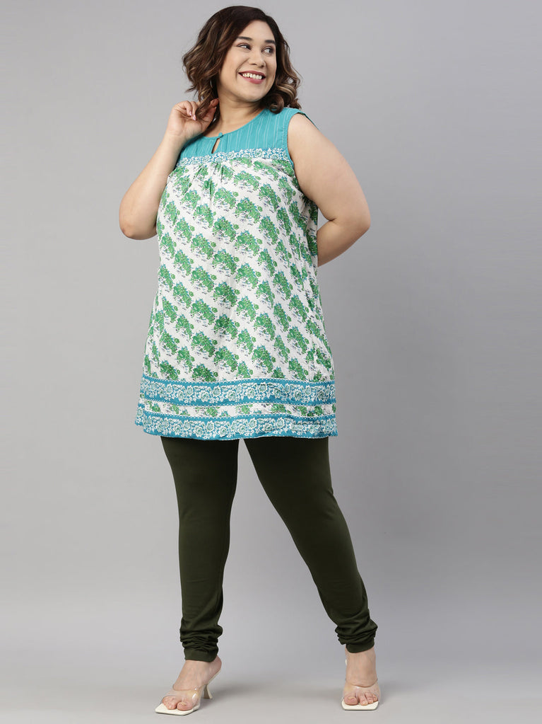 Dark Green Cotton Stretch Ankle Length Leggings