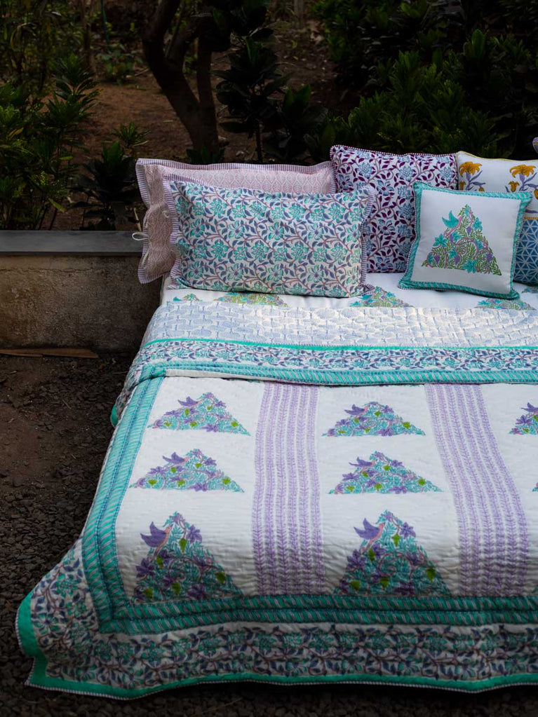 Fields of Lavender Block Printed Cotton Cushion Cover - 16 Inch