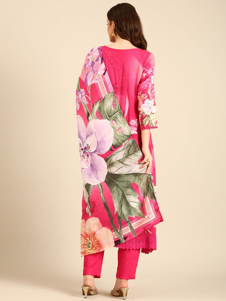 Embrace the elegance of this rose pink rayon suit set, featuring a digital print yoke richly embellished with kardhana beads and hand-applied sequins. The exquisite handwork adds a radiant shimmer, enhancing the delicate fabric's charm. Perfect for festive occasions, this ensemble combines traditional craftsmanship with contemporary style to make you shine with confidence and grace.