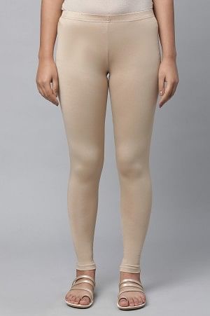Almond Gold Solid Ankle Length Leggings