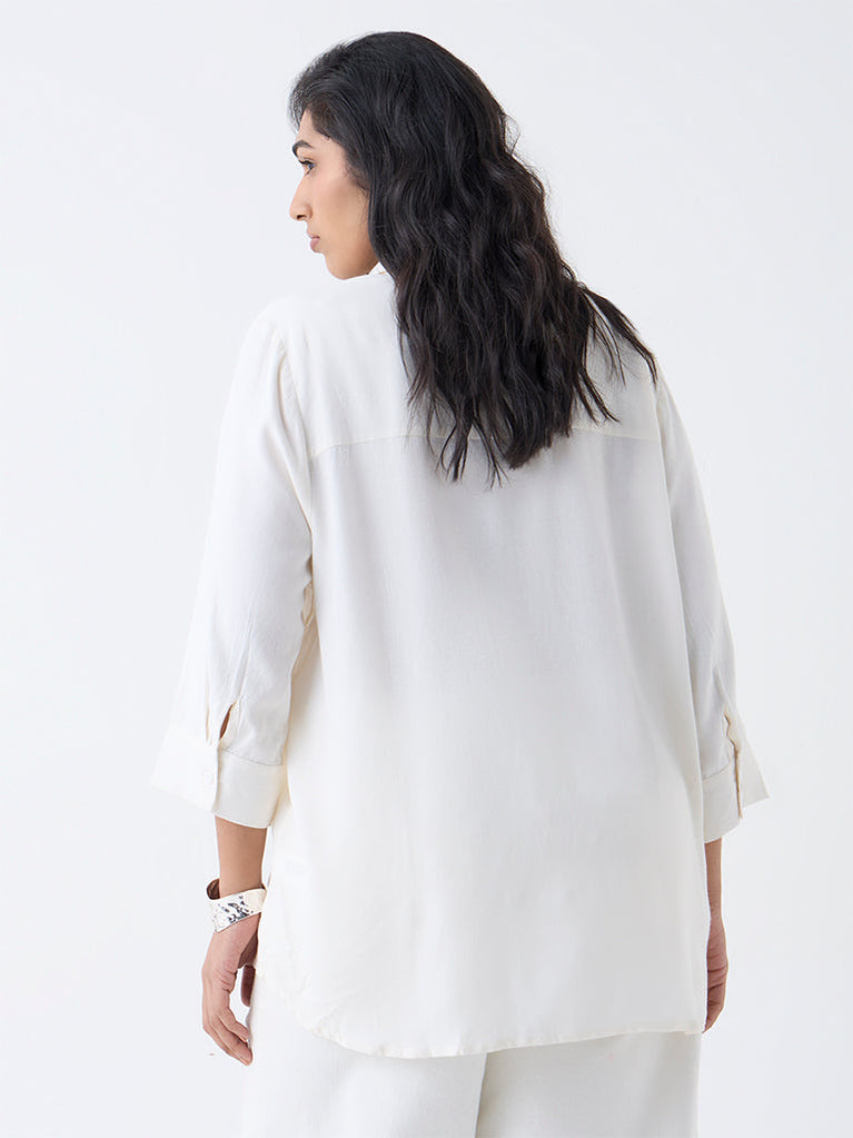 Gia introduces this cream shirt adorned with a soft foliage print that brings a feminine touch to your weekday wardrobe. Crafted from an ultra-lightweight fabric that drapes beautifully on curves, it features a classic collar and button-up front for clean structure. Full sleeves create a refined look, making it perfect for work, brunch, or anywhere you want to feel polished without effort.