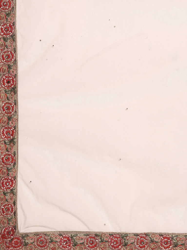 Designed in flowy green georgette, this elegant gown features heavy moti embellishment on the top, complemented by a stylish shoulder design and an attached dupatta. The graceful silhouette and intricate detailing make it an ideal choice for weddings, festive evenings, and special celebrations.