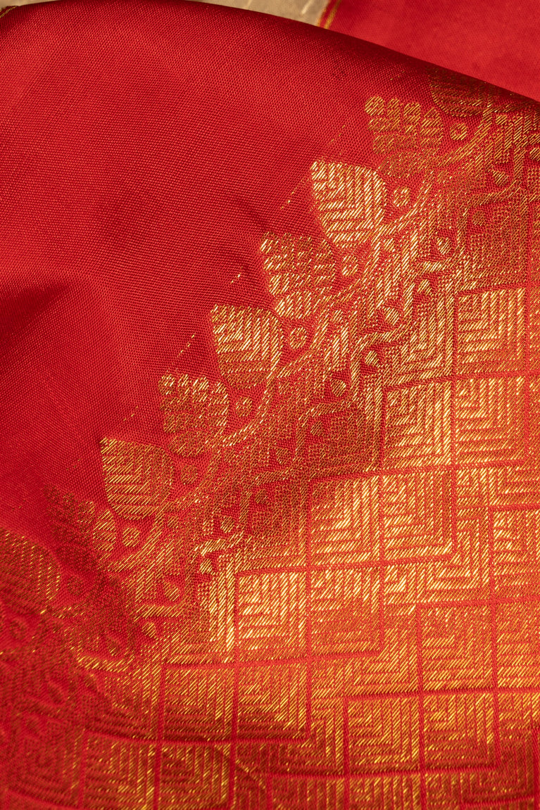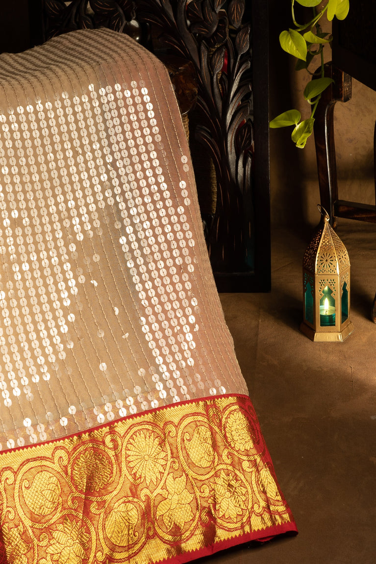 Mandir Beige & Saffron Kanchipuram Buttis Saree