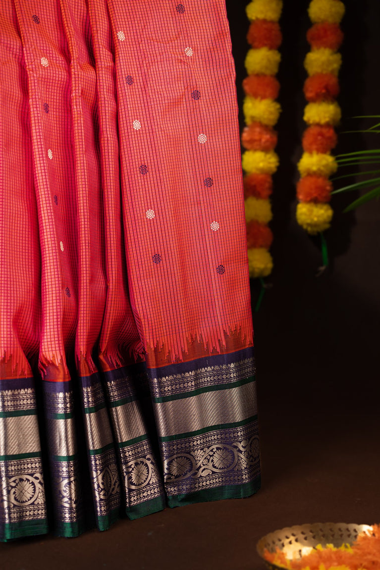 Mandir Light Pink & Royal Blue Gadwal Checks And Buttis Saree