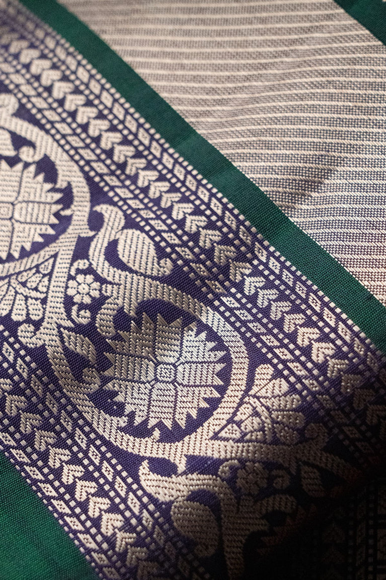 Mandir Lime Green & Navy Blue Kuppadam Motifs Saree