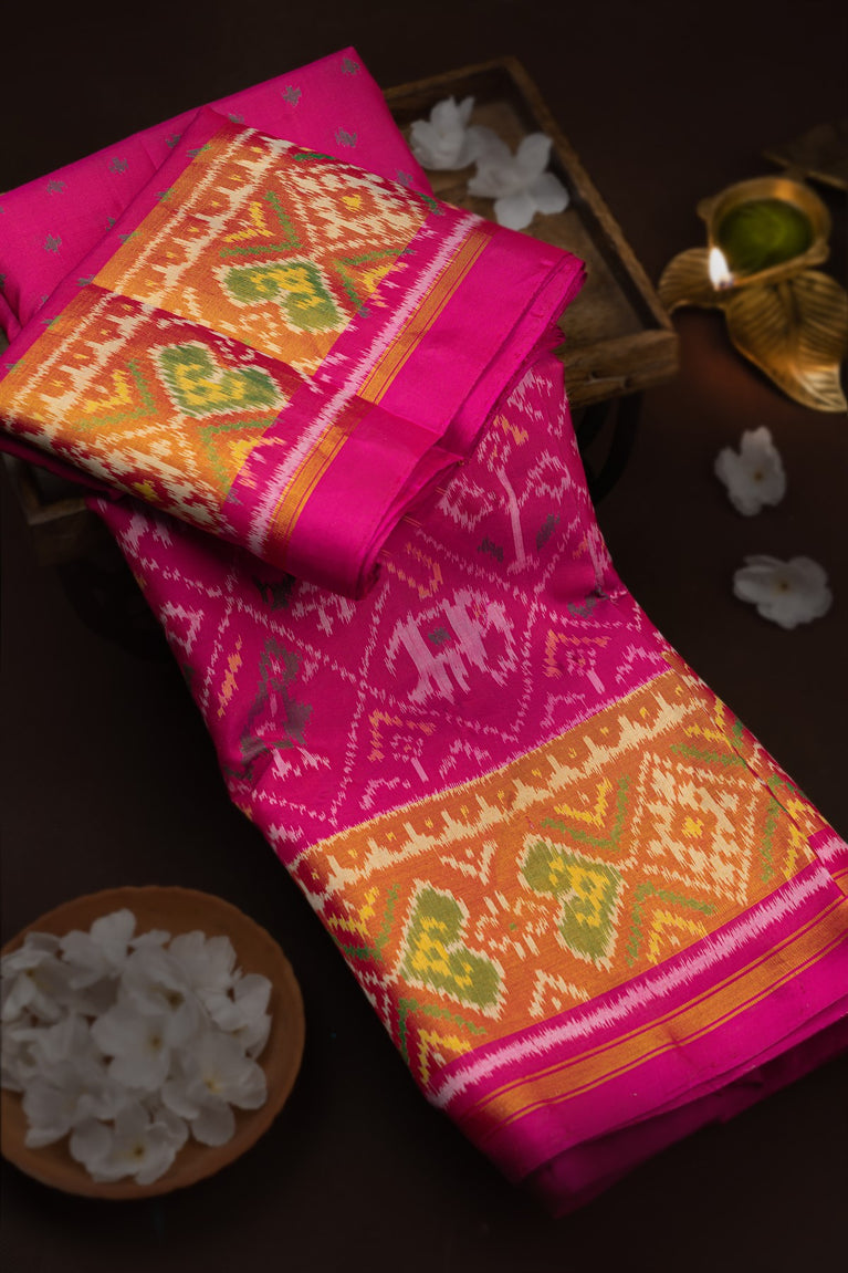 Mandir Pink & Light Pink Ikat Ikat Saree