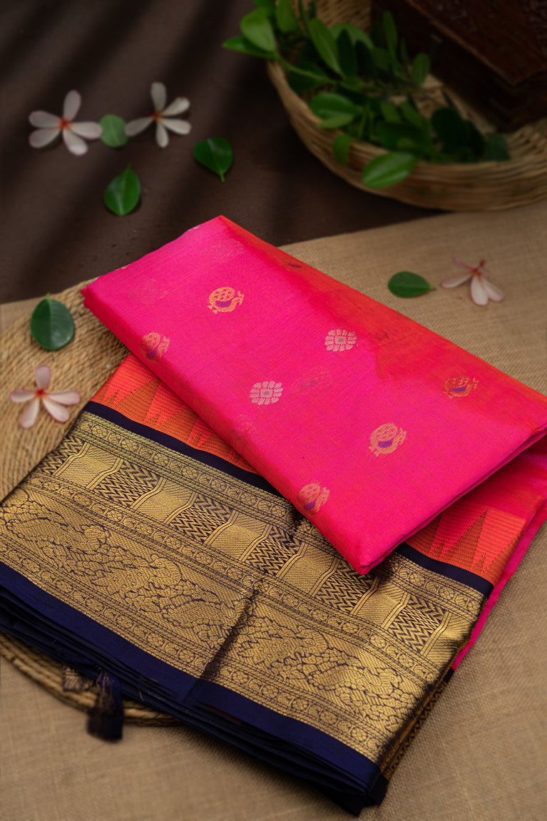 Mandir Pink & Navy Blue Kuppadam Buttis Saree