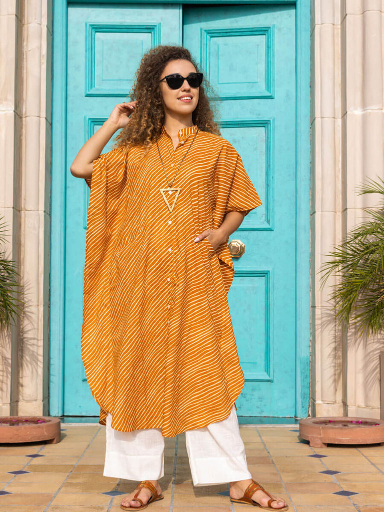 Set of 2 - Breeze Dabu Indigo Shirt Dress and Pants
