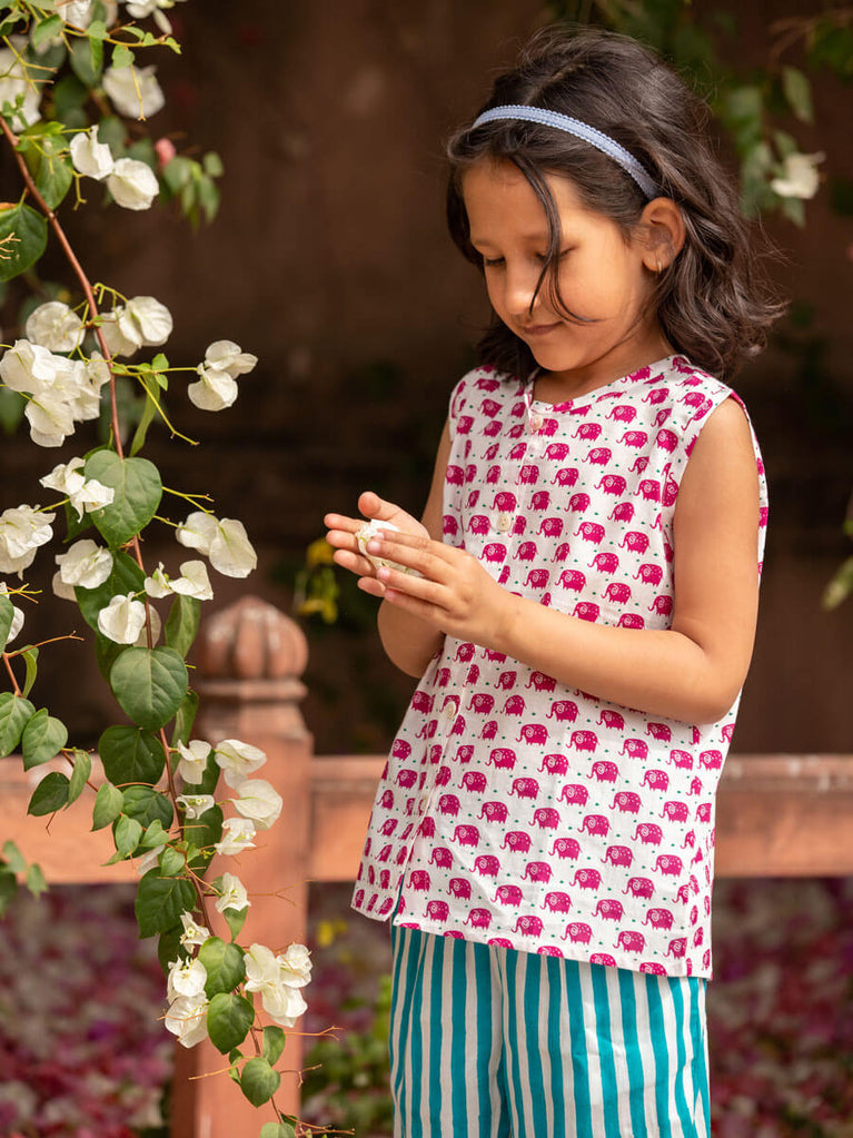 Set of 2 - Flower Garden Organic Cotton Block Printed Top & Pants Set