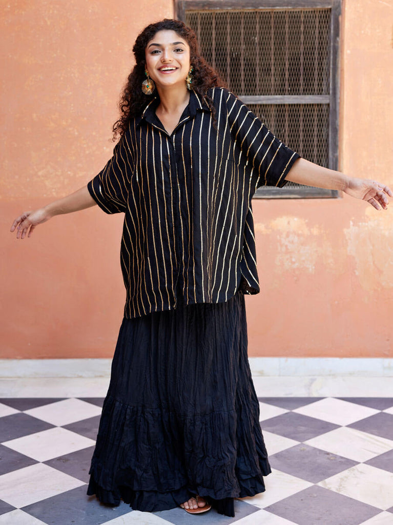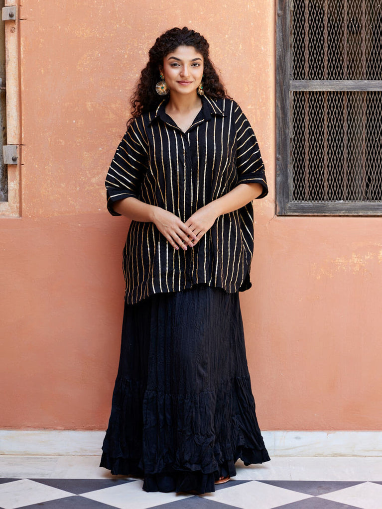 Set of 2 - Inaayat Black Modal Pintuck Kurta and Palazzo