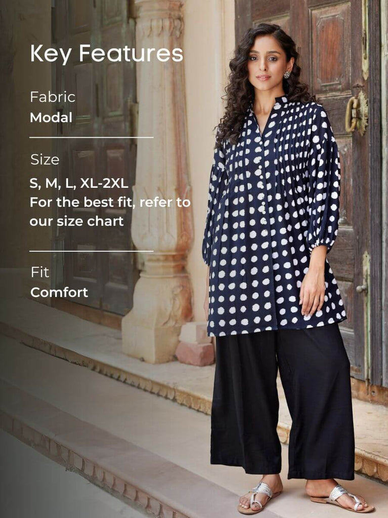 Shiddat Black Hand Printed Pintuck Shirt Kurta