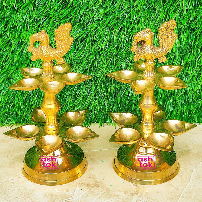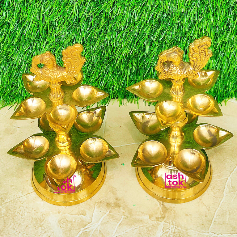 Best Quality Pure Brass Panchamahal 2 Step Peacock diya Set. Designed by Ashtok. We provide the most affordable prices and free shipping throughout India.