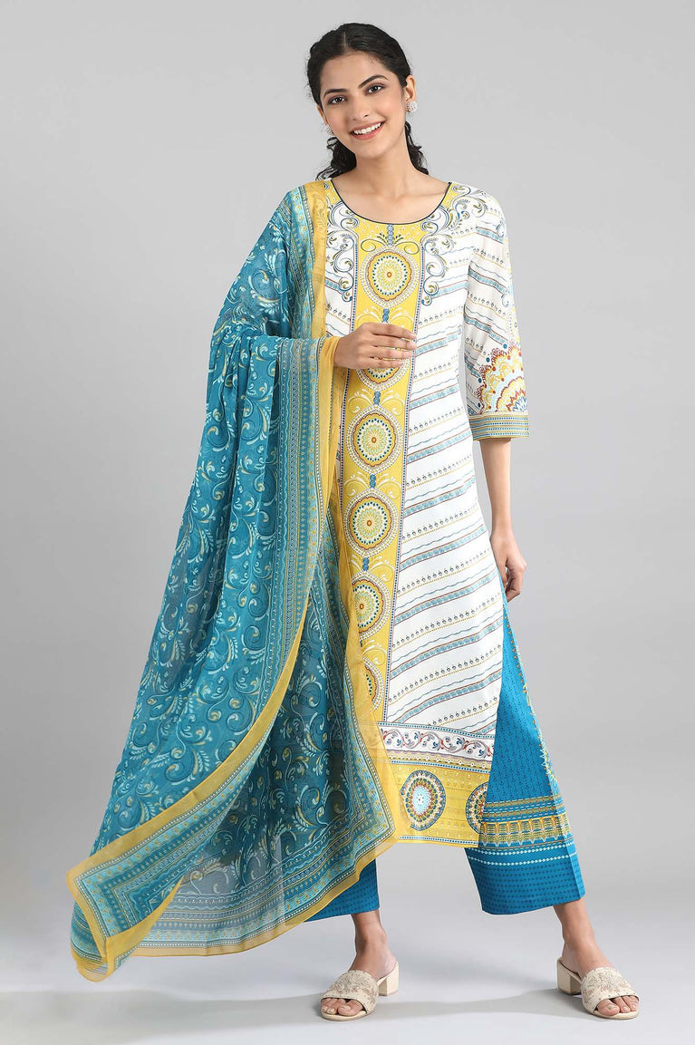 These straight-fit cambric palazzos feature a classic polka dot print. It is elasticated at the back for comfort and can be teamed with any of our kurtas.