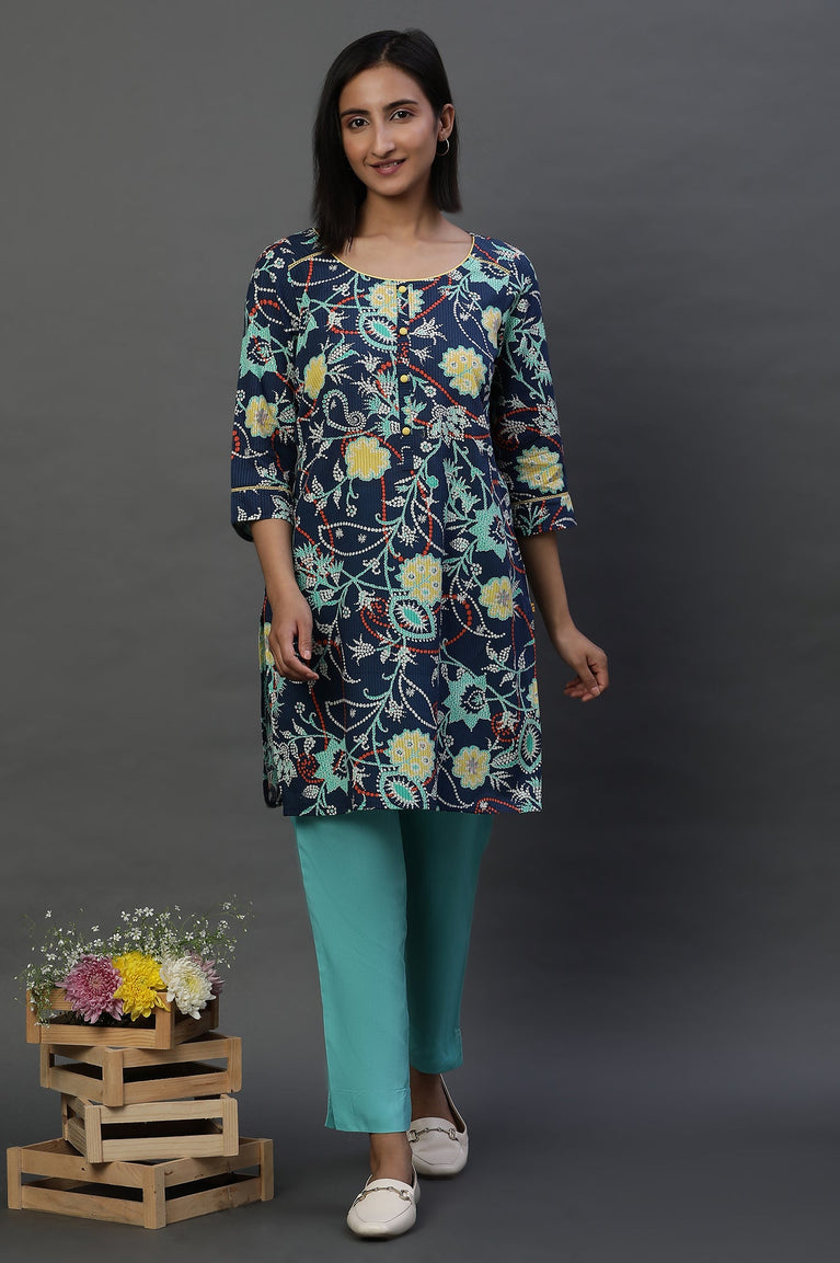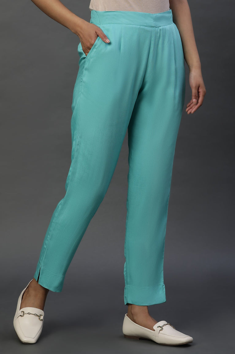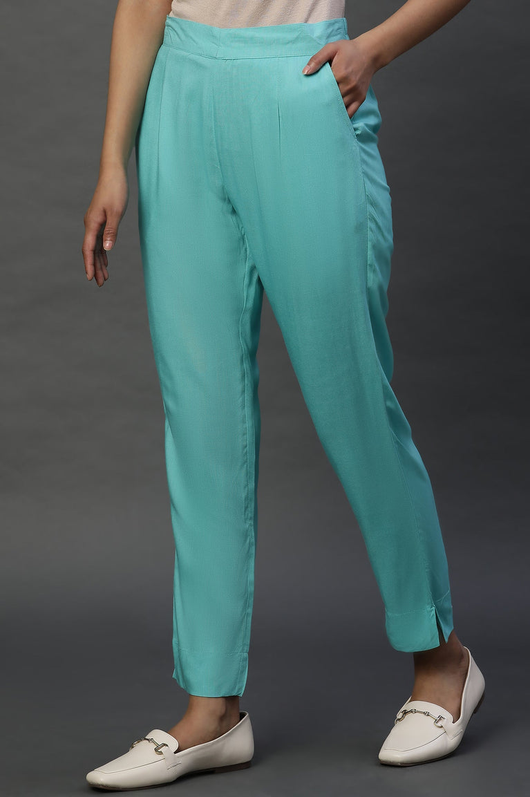 Experience the perfect blend of comfort and style with these blue casual trousers. Crafted from 100% cotton, these ankle-length trousers feature a mid-rise and partially elasticated waistband for a secure fit. The solid pattern and straight hem add a chic touch, while the two front pockets offer practicality. Ideal for a relaxed yet polished look, pair these trousers with a kurta and flats for effortless elegance.